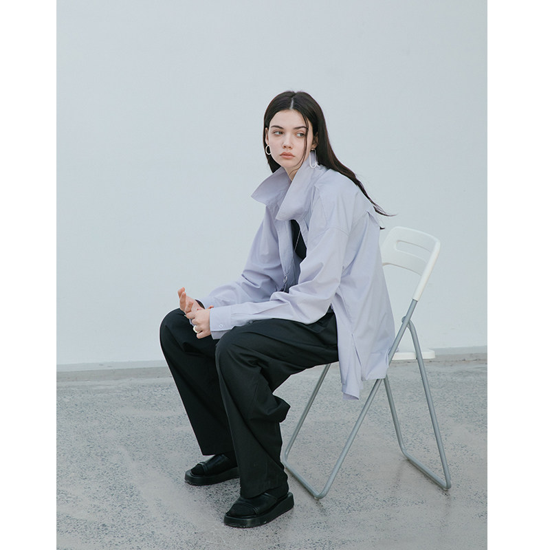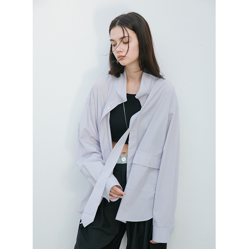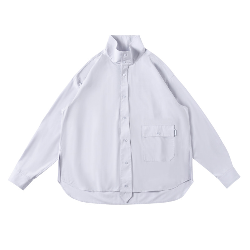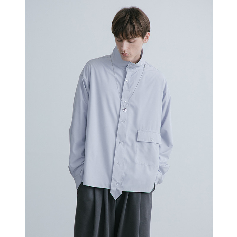 EKCOOKIES original designer with stand collar and tie on the outside, deconstructed profile shirt design feeling niche