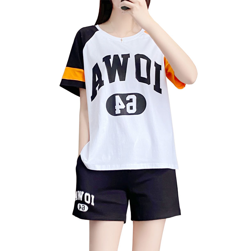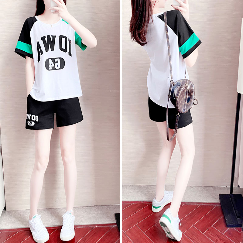 2022 summer Korean style trendy short-sleeved sports suit women's loose casual shorts two-piece fashion student running suit