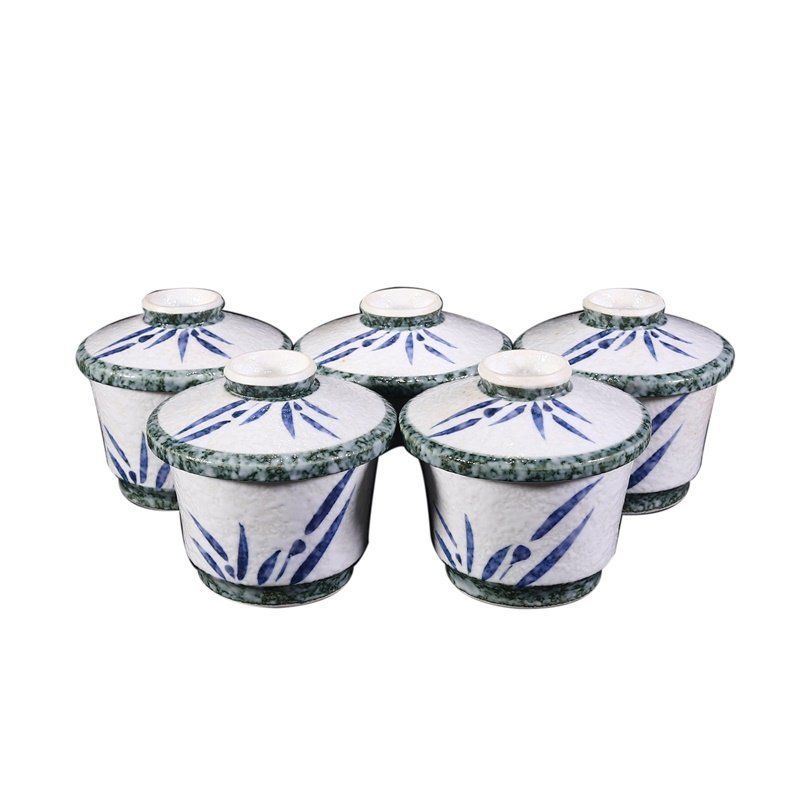 (Japanese style-porcelain)Shino Yaki tea cup lidden cup utensils 5 pieces of fun collection ornaments Q4519