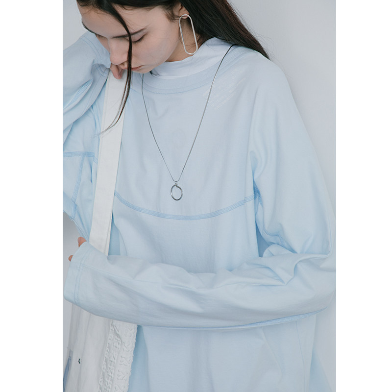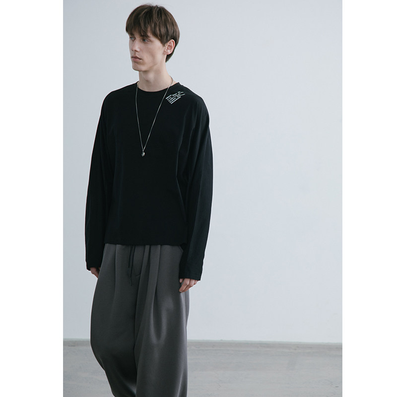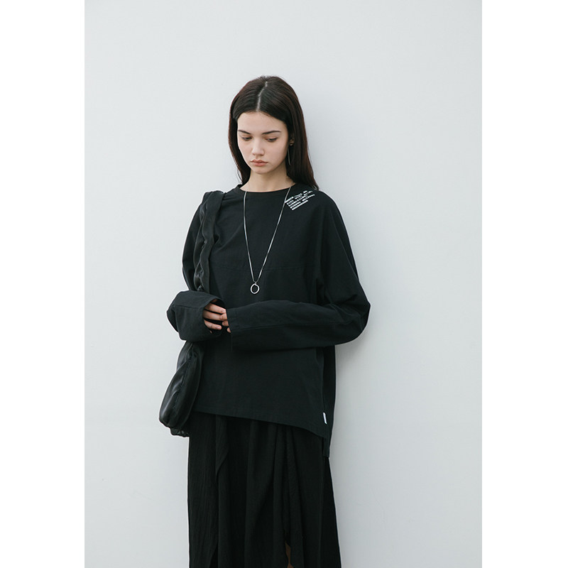 EKCOOKIES original designer Zhou Zhennan same round neck skin thread embellished bottled long sleeve T-shirt