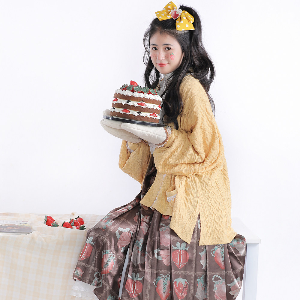 Rainbow Squad Knitted Aircraft Sleeve Short Shirt Song Hanfu New Year's War Suit Daily Cute Sweater Cardigan Multicolor