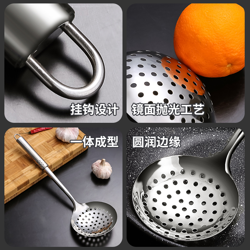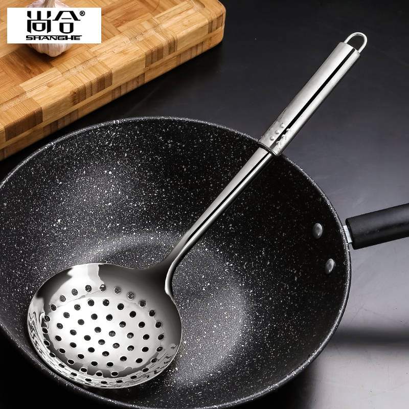 Champ Stainless Steel Large Net Leakage Kitchen Scoop Wire Drain Fried Mixed Flour Spoon Bailing Dumplings Strainer Big Drain Spoon