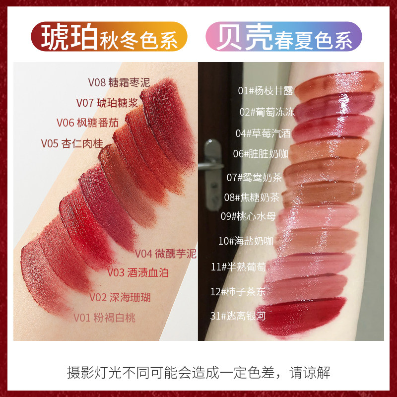 joycee yeast color lip glaze amber shell mirror 05 yuanyang milk tea sea salt milk coffee 06 enzyme lipstick jocyee