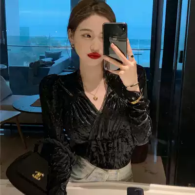 White Lace Bubble Sleeve V-neck Lace Splice base shirt Women's 2021 New Wear Long Sleeve T-shirt Top