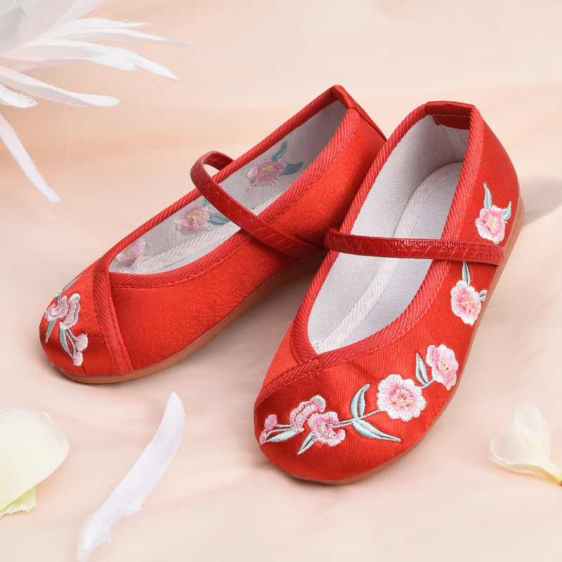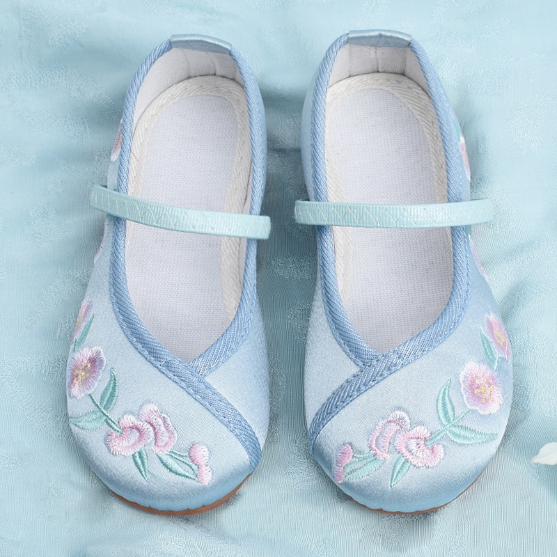 Black buckle children's Hanfu shoes girls costume with embroidered shoes