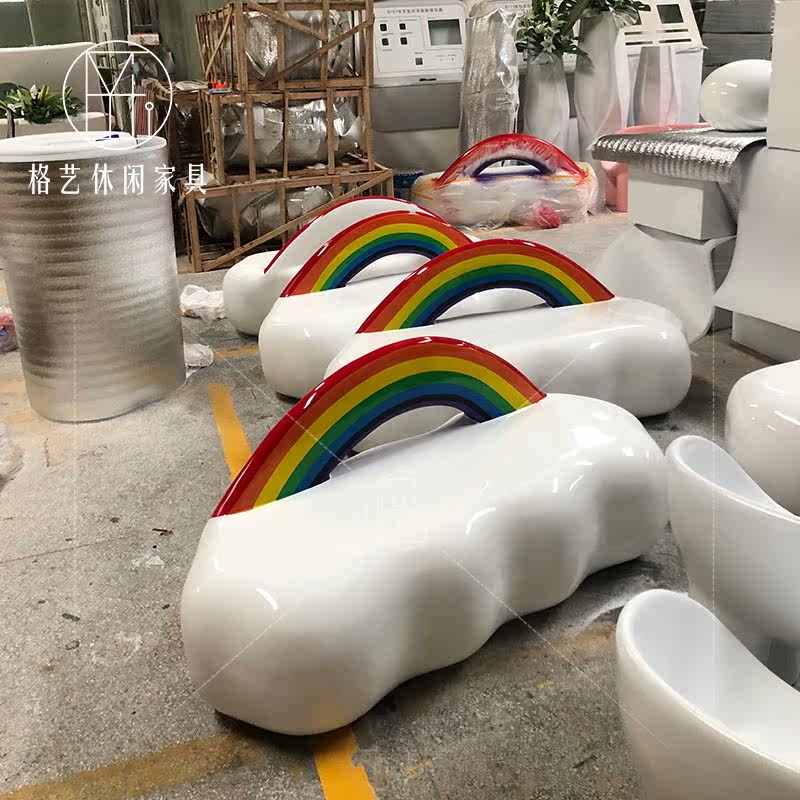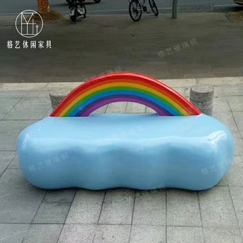 Glass Fiber Mall Casual Chair Park Cartoon Creative Rainbow Bench Cloud-Shaped Children Backrest Lounge Chair