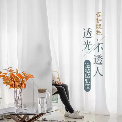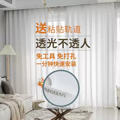 Curtain transparent opaque curtain adhesive Nordic modern simple bedroom living room floor adhesive hook free of holes