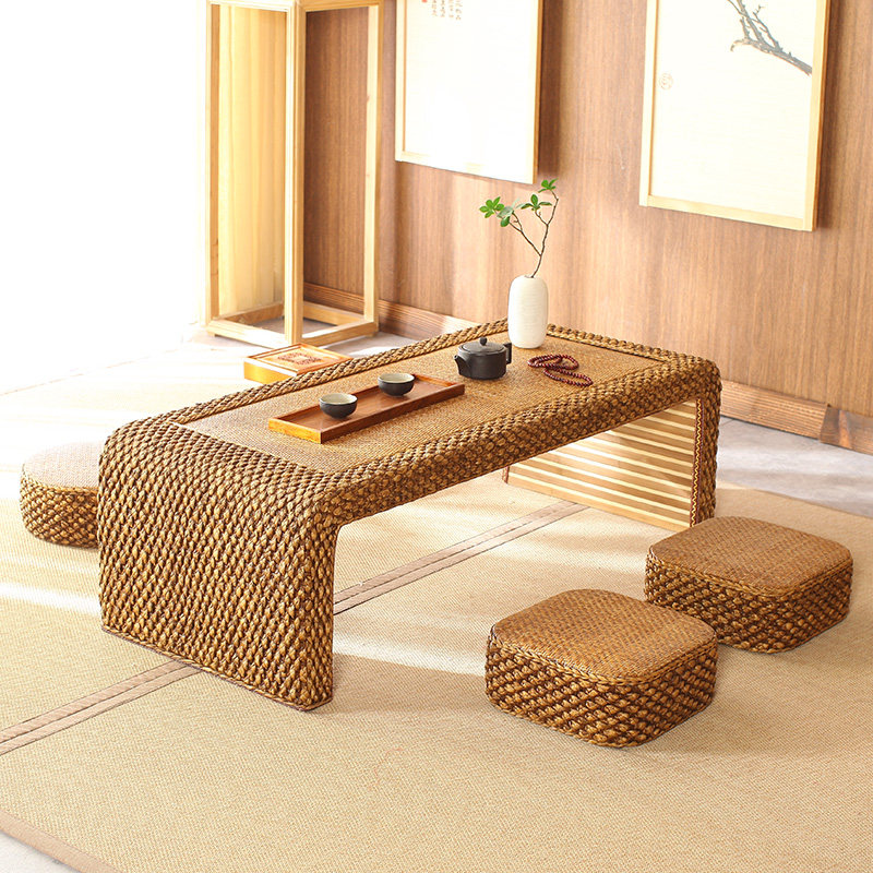 Rattan-made tea table tatami short table Zen Serie Kung Fu tea table Balcony Short table Living room Tea table Chairs Small Family
