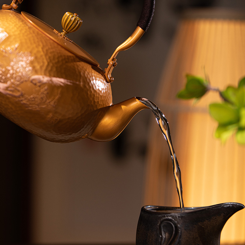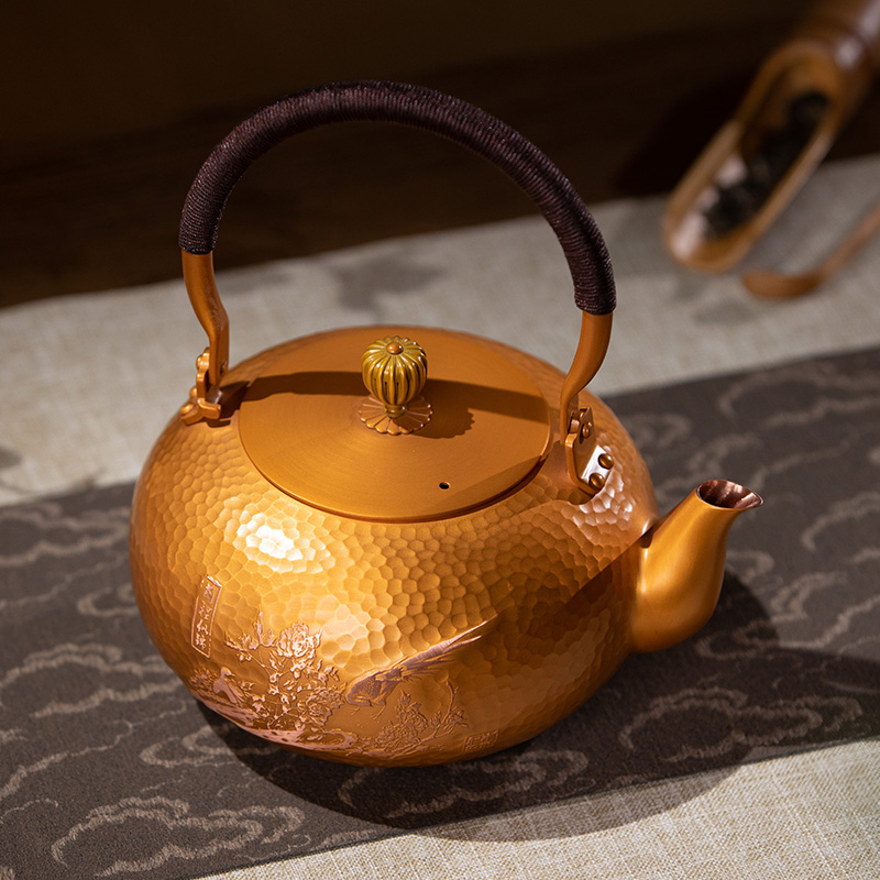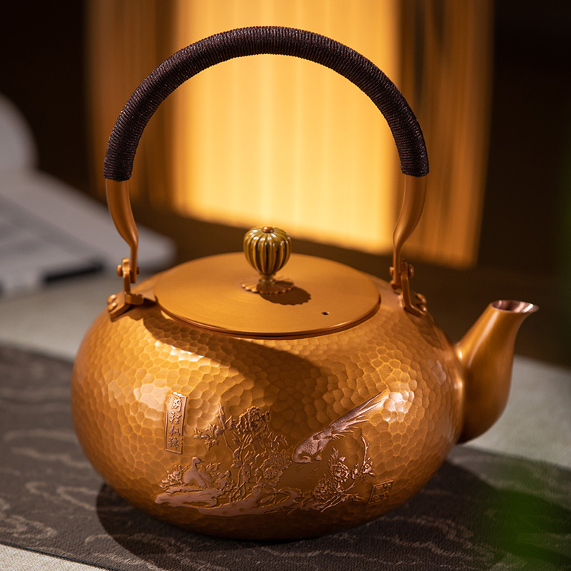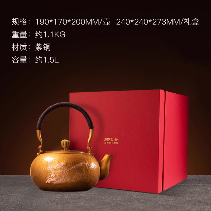 Zhu Bingren copper handmade large copper pot home office heat-resistant teapot tea set gift box with a bright future pot