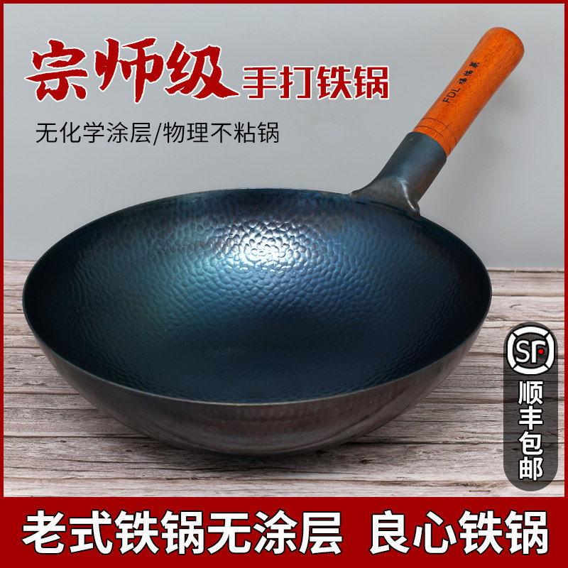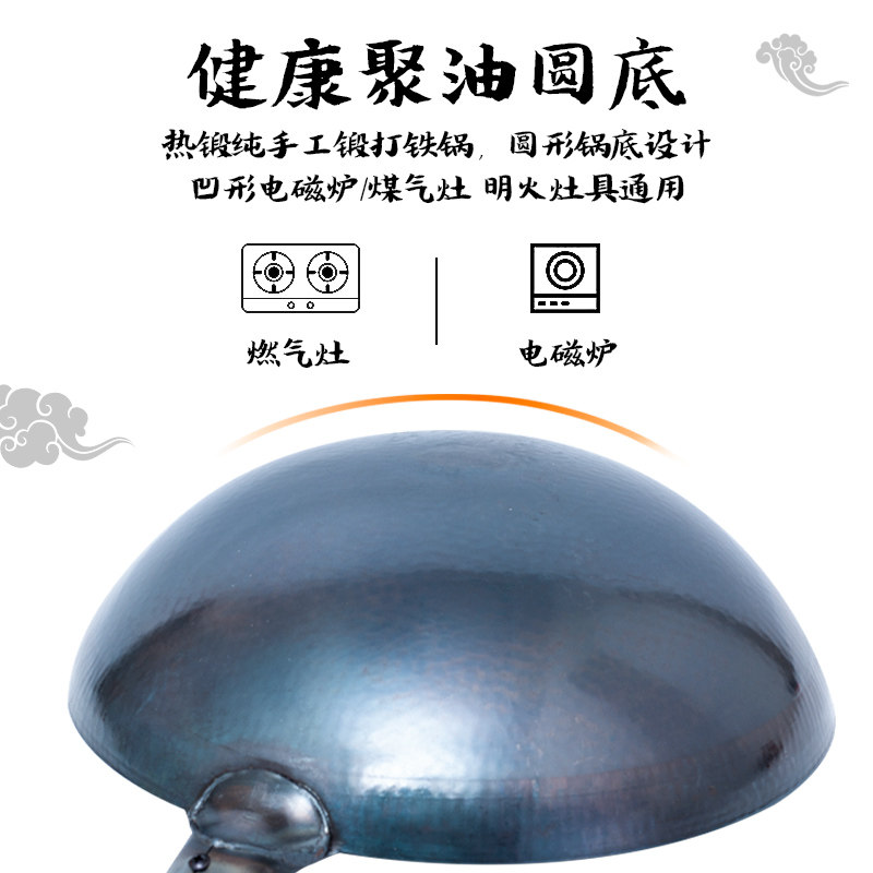 Zhangqiu handmade pure iron pot same old-fashioned round bottom iron pot home wok non-stick pan uncoated wrought iron wok