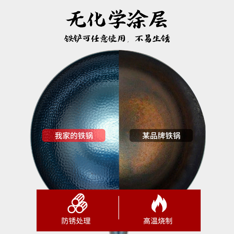 No coating, not easy to rust, less oil smoke, not easy to stick to the pan