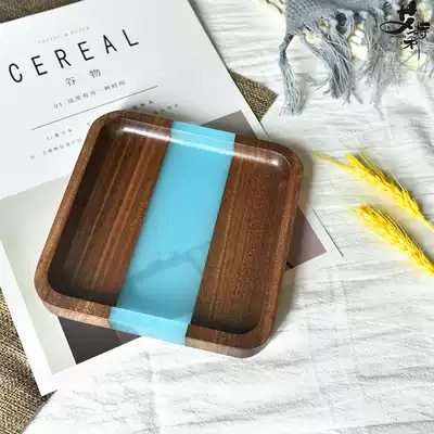 Square dried fruit plate (black walnut whole wood) 15x15x2 North American black walnut (blue) 15x15x2 North American black walnut (yellow) 15x15x2 North America