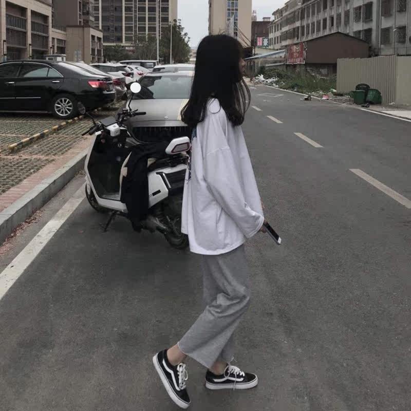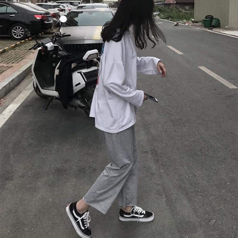 Grey Sports Pants Woman High Waist Pituality 2022 New Spring Autumn Ins Tide Casual Loose Straight Cylinder Broadleg Thin Sweatpants