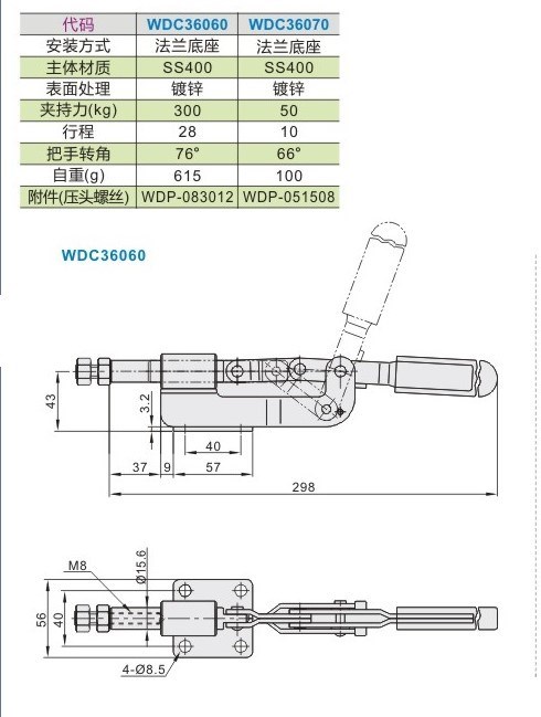 Original elbow clamp replaced push and pull pressing clamp flange floor fast fixture WDC 36060