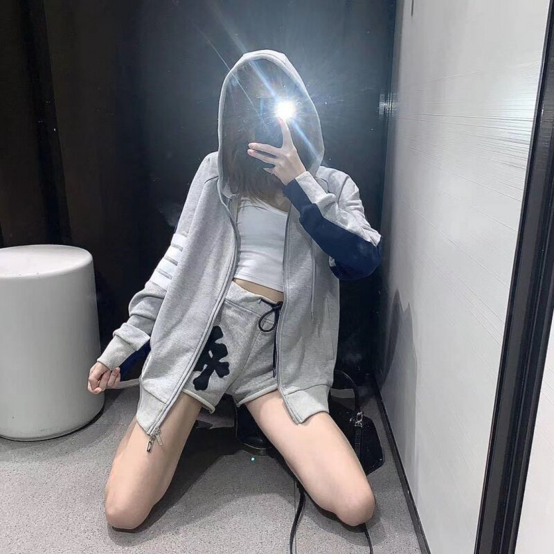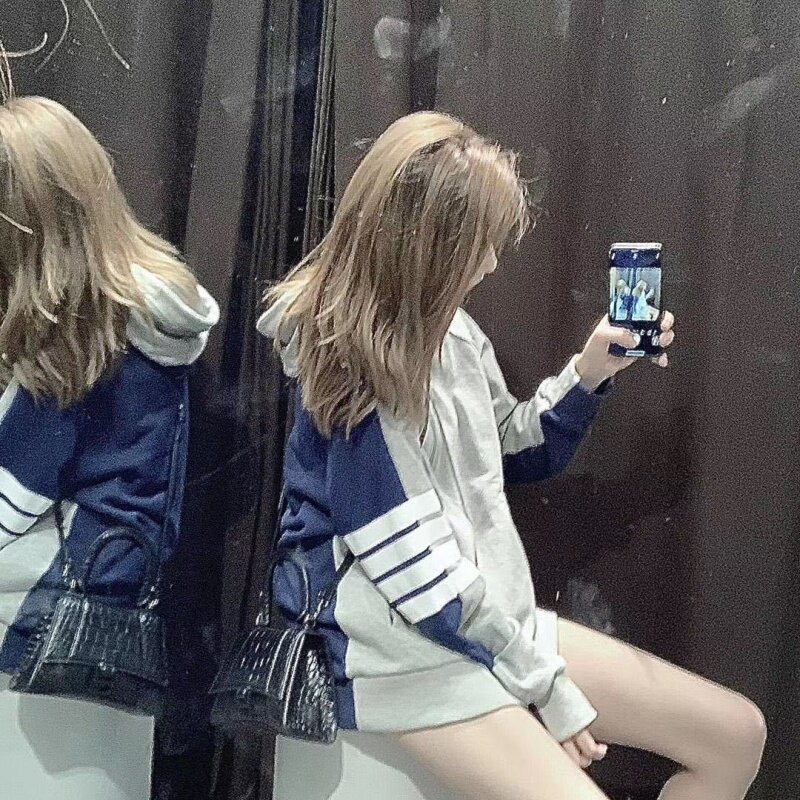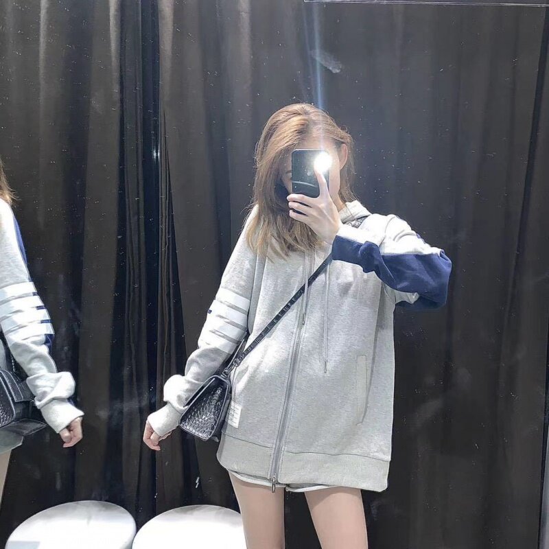Thom Browne TB front and rear color-block zipper hooded sweatshirt hoodie hoodie men's cardigan casual coat