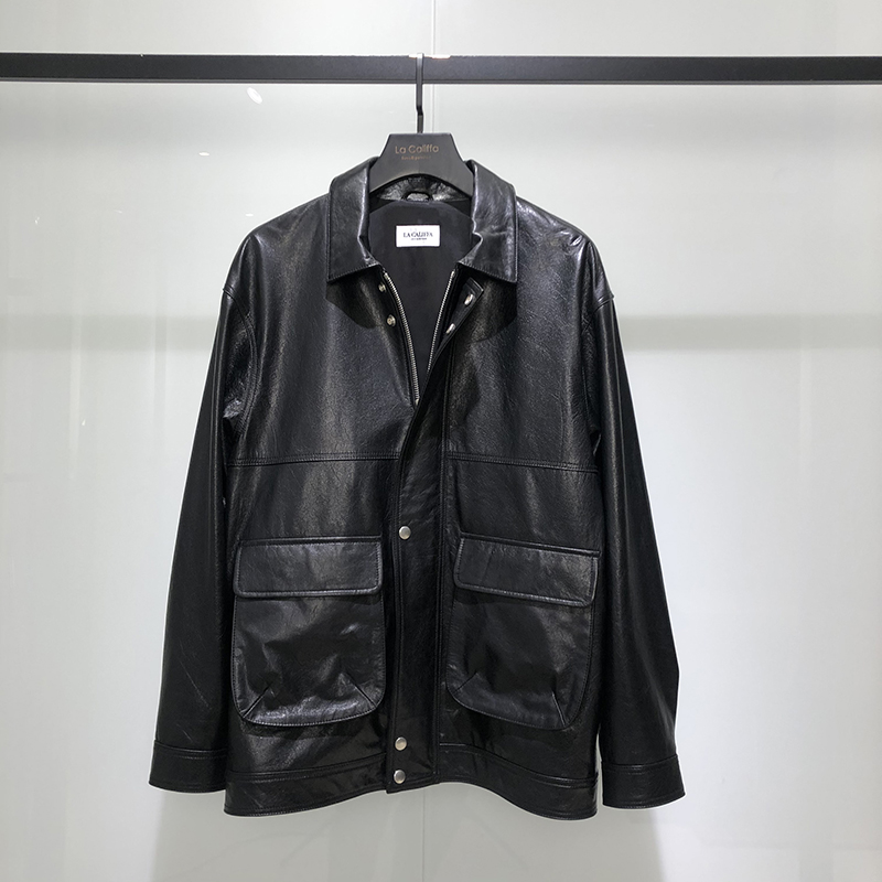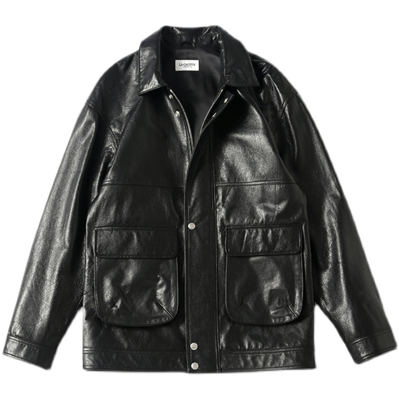 LA CALIFFA Designer "Cracked Waxed Sheepskin" OS Loose Edition Tooling Style Leather Jacket