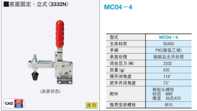 MC04-4L vertical vertical fast clamp clamp replaces Misumi elbow clamp MC04-4 HV650L