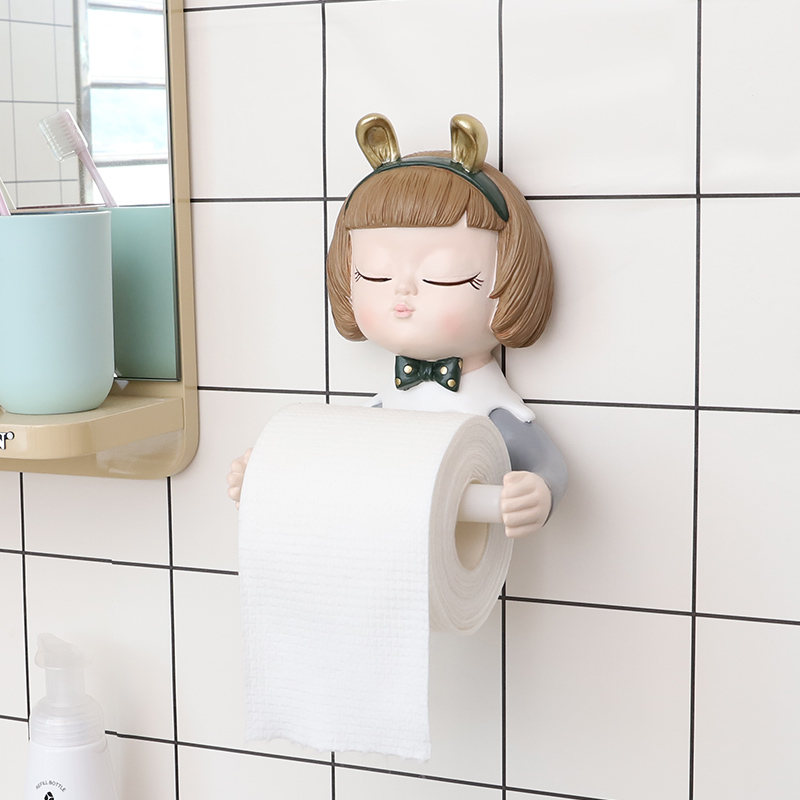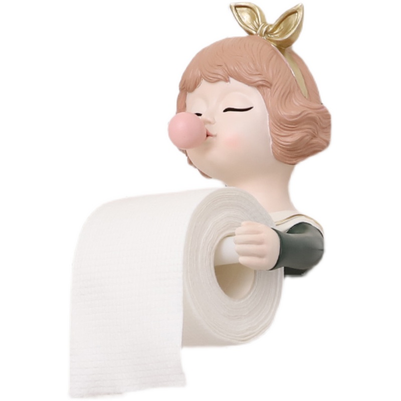 Cartoon creative roll paper tube hanger free punching wall-mounted shelf cute bubble girl bathroom tissue box