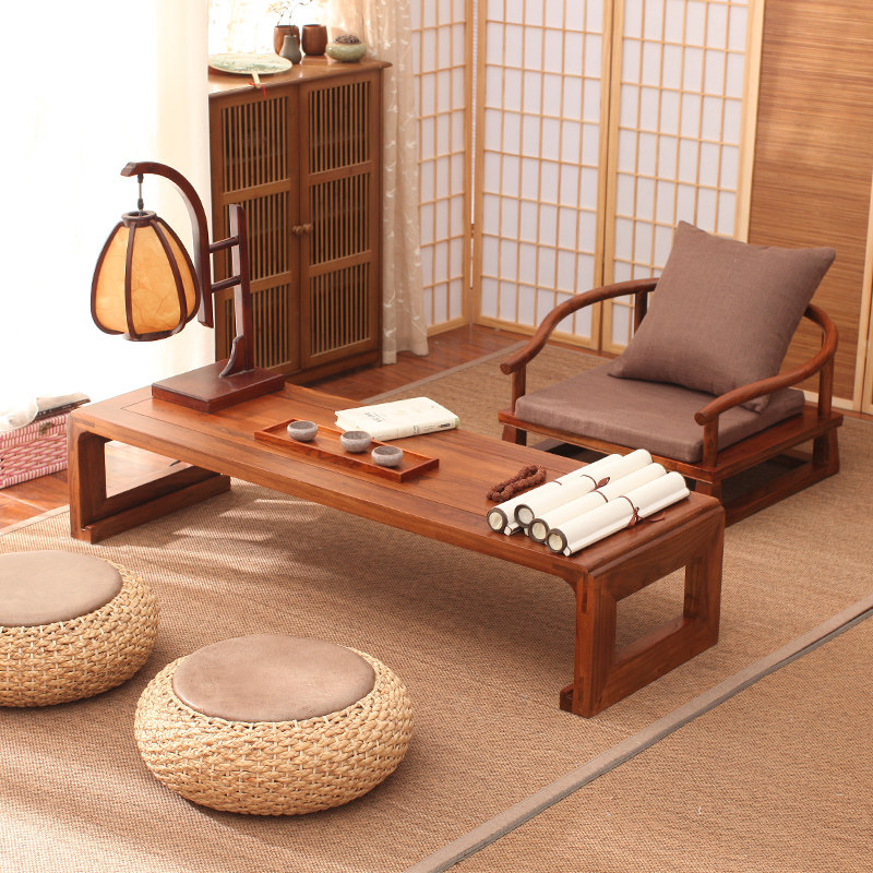 Solid Wood Tatami Tatami Tea Table Dwarf Table Sitting Ground Day Style Dwarf Table Kang Table Home Brief New Chinese Meditation Tea Table
