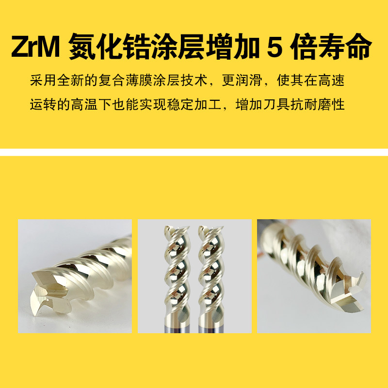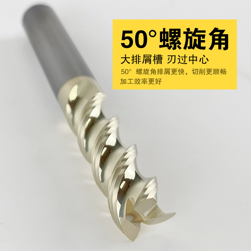 Imported high - light and efficient tungsten steel steel and aluminum with heavy carbide steel milling cutter U - shape slot large feed 3 - edge coating