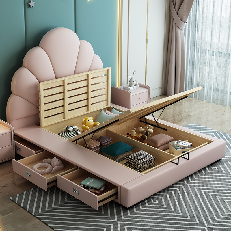 Shell children's bed 1 2 meters leather bed 1 5m1 8 meters cartoon simple modern boys and girls technology cloth storage furniture