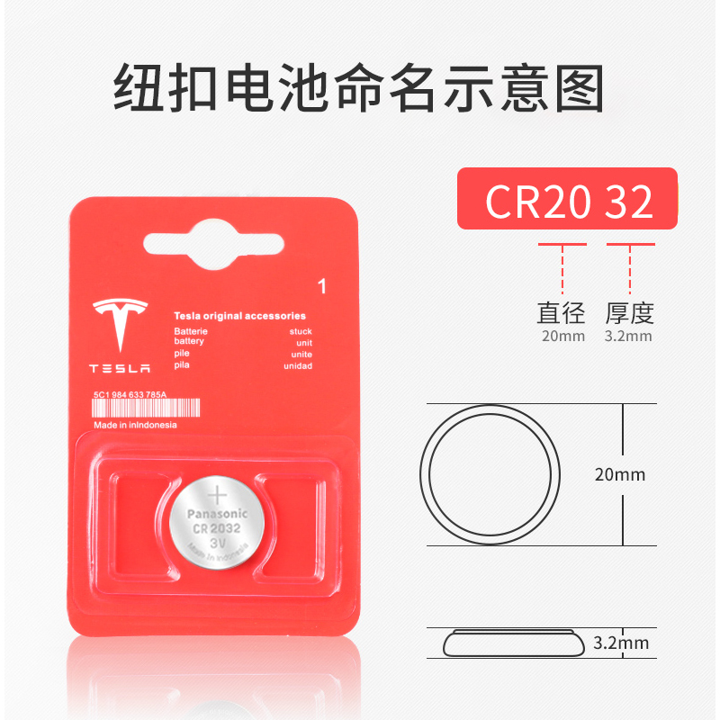 1 dedicated for Model3 (CR 2032 original battery) 1 dedicated for Model Y (CR 2032 original battery) 1 dedicated for Model S (CR 2032 original battery)