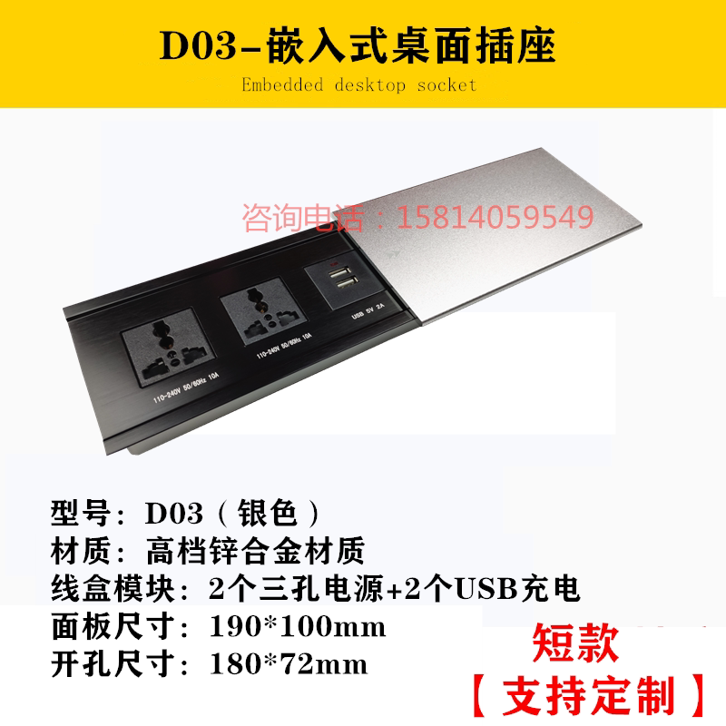 Countertop office conference table Multi-function socket Multimedia desktop socket Embedded slide cover USB power plug board