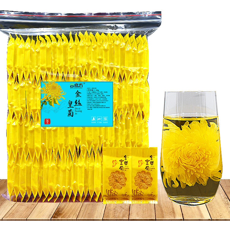 Chrysanthemum tea chrysanthemum golden silk chrysanthemum yellow chrysanthemum a cup of flower tea big flower under the fire girl to go to the fire to clear the fire and clear the heat tea