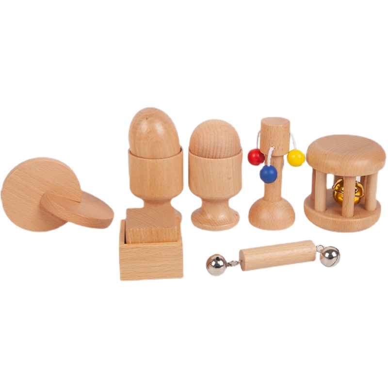 A sound cylinder with a bell attached to the bell (cannot be taken apart) egg and mug balls and mugs rocking the wood block and the bell box with a square buttoned log sheet (can be taken apart)