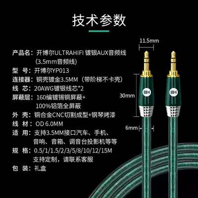 Kaiboer silver-plated 3 5mm male-to-male audiophile headphone cable Audio cable Flatbed car AUX audio cable