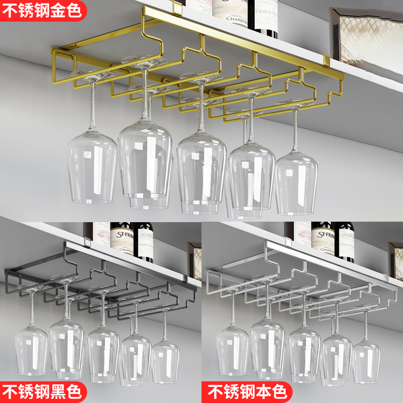 Punch-free stainless steel 304 hanging wine glass rack home wine rack decoration red wine glass rack goblet upside down