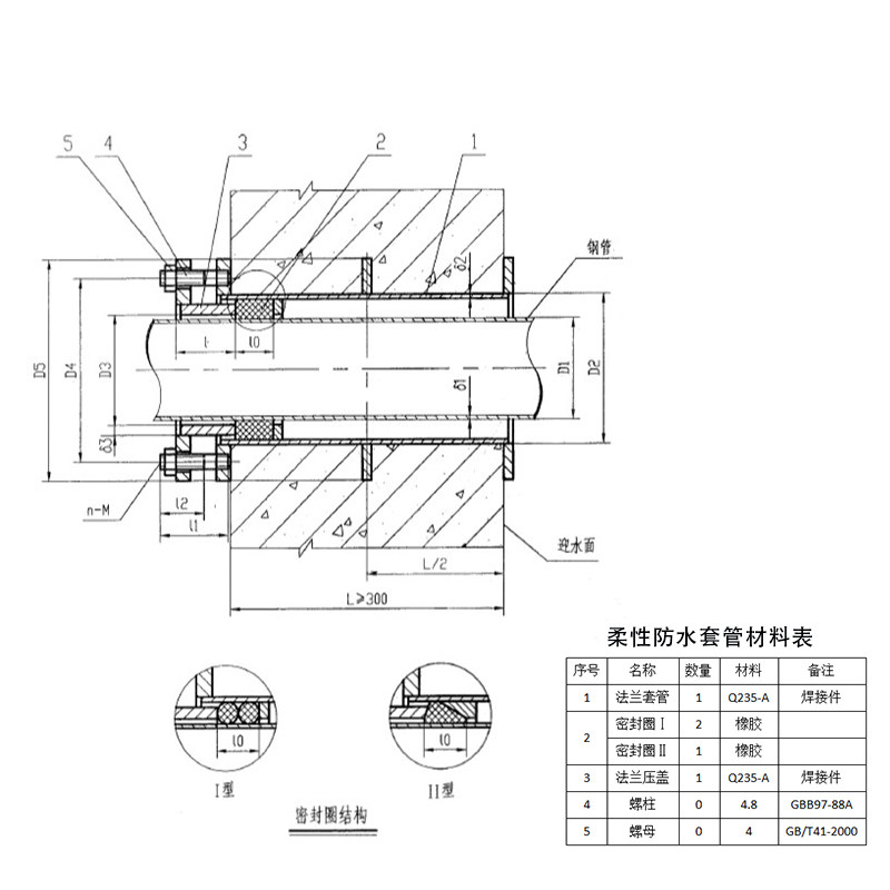 Flexible waterproof casing A type B type pre-embedded wall pipe rigid water stop ring rigid waterproof casing 2DN100 air defense
