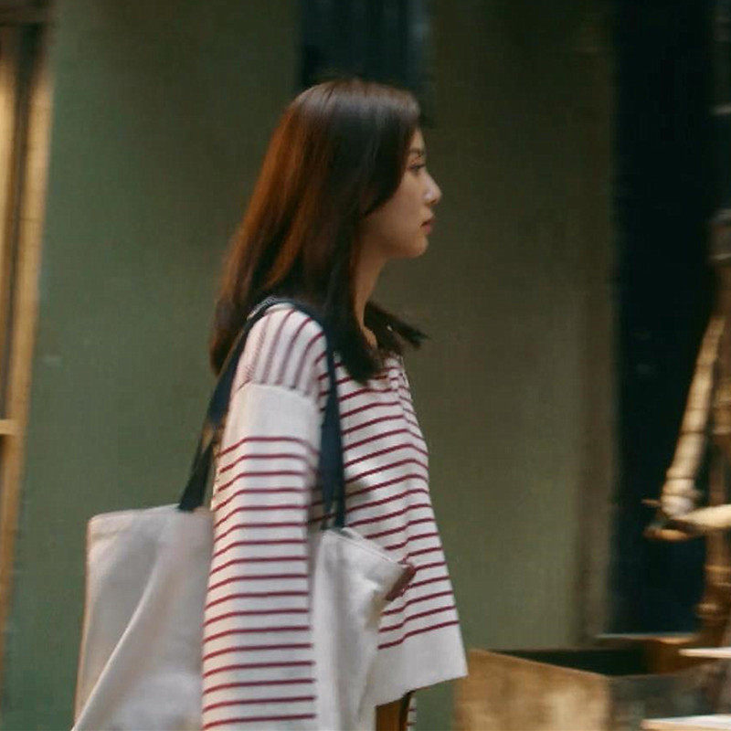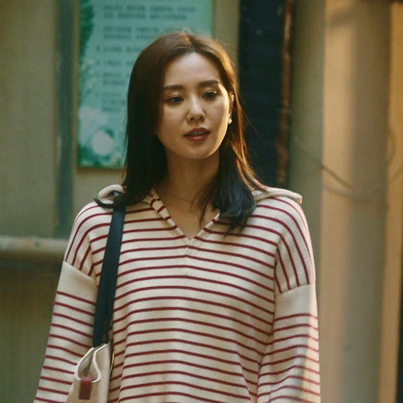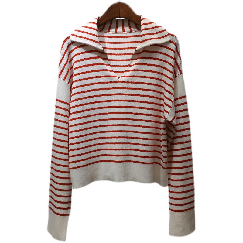 22 Spring and Autumn Season Stream Golden Years to South Sun Liu Poetry Poetry in the same style Loose V Collar Sweater Women's Striped Blouse Blouse Blouse