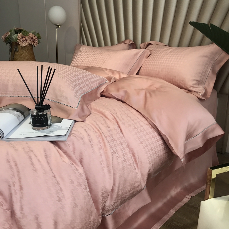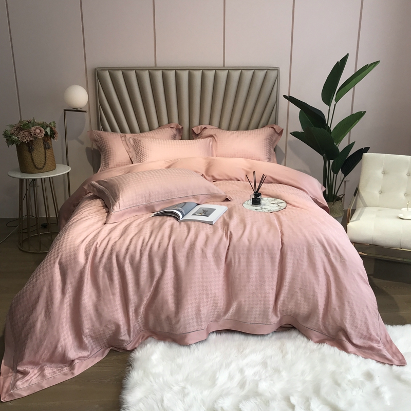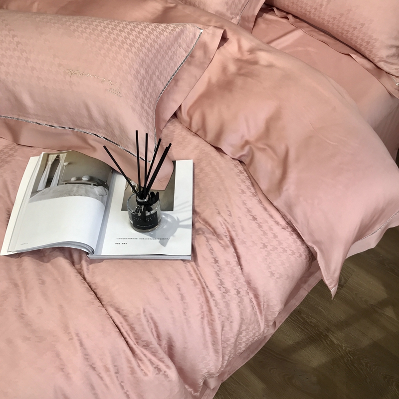Nordic style four-piece quilt cover Tencel jacquard satin silky simple light luxury cool feeling sheets ice silk bedding
