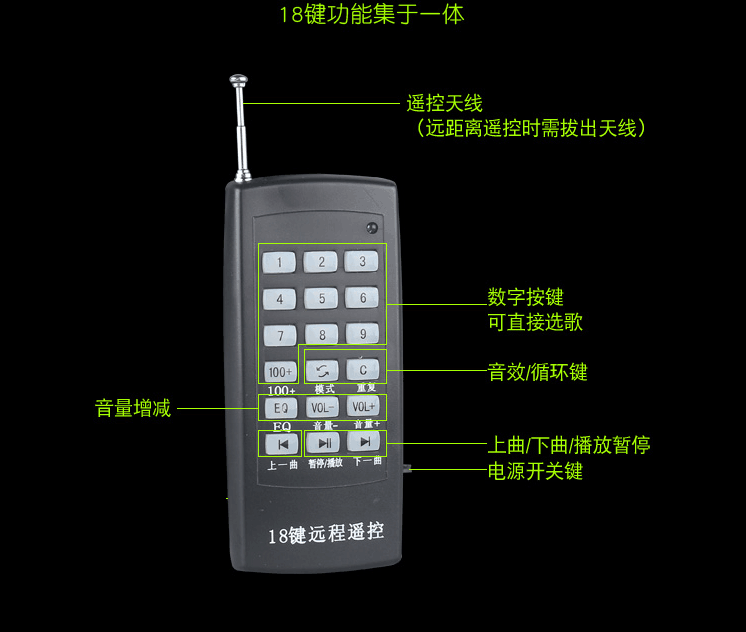 Mustang Zhiyin 898 little bee audio media machine 18-key remote wireless audio media amplifier universal remote control