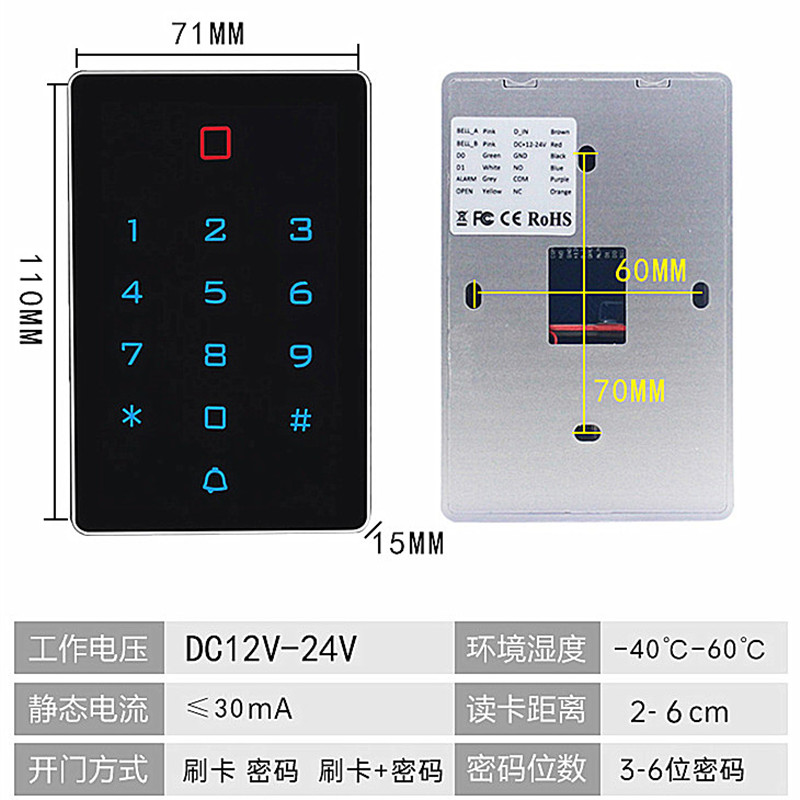 ID Waterproof Touch Gate Gag IC waterproof touch door Forbidden Machine ID Touch Access access All (touch paragraph) IC Touch Access Control All (touch paragraph) ID password Key door Forbidden Machine (press-button section)