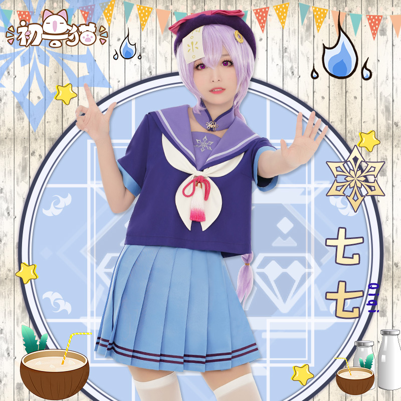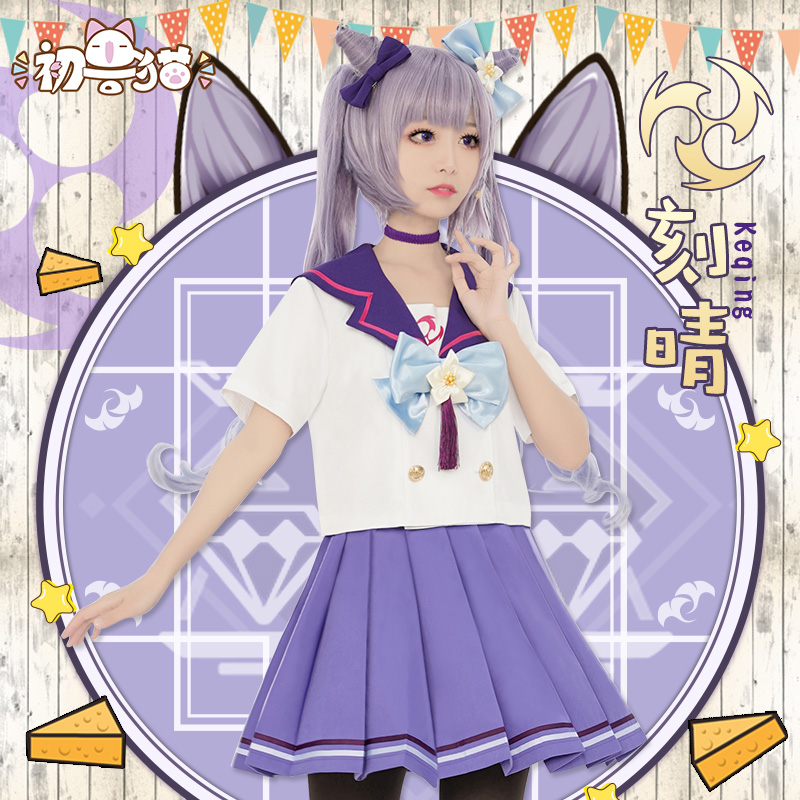 First beast cat pre-order Original god Keqing seven seven Keli cosplay Glass Moon College uniform women's cos suit