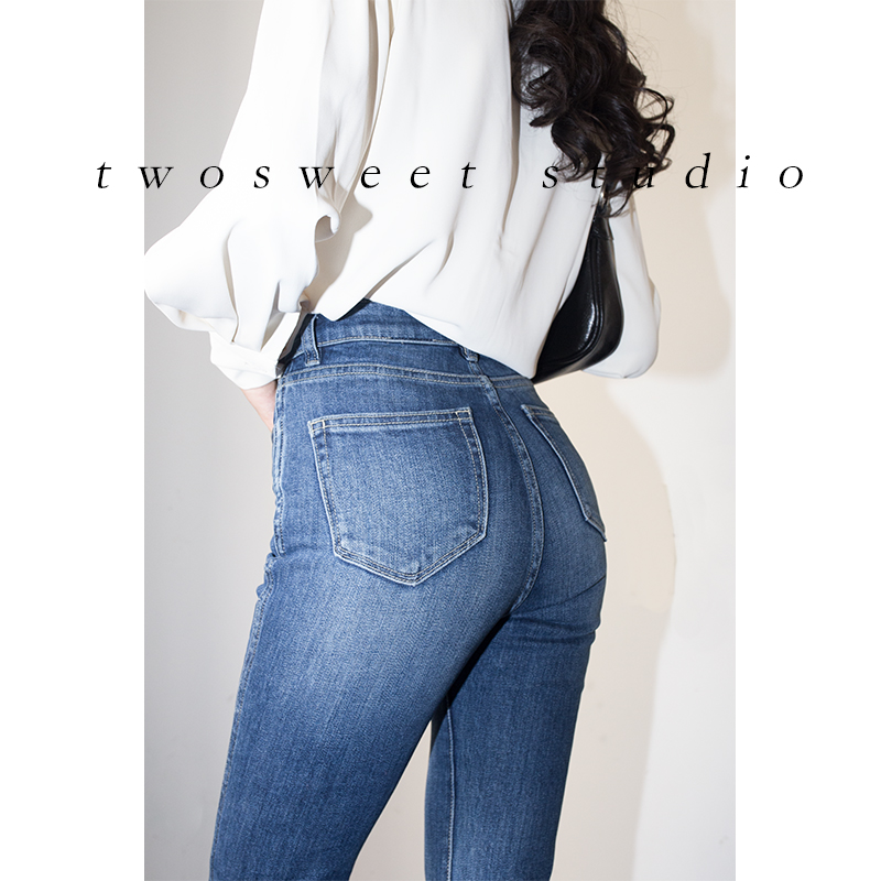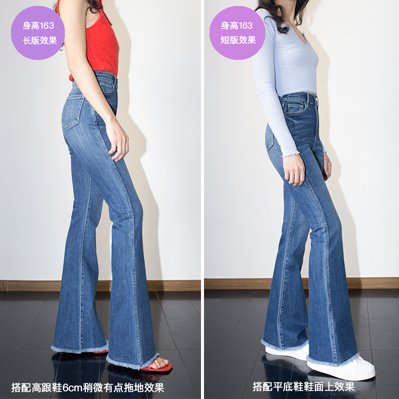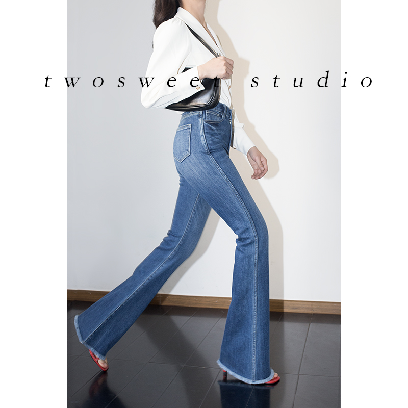 Wang Fried Single Product 2021 Spring New Raw Edge Flared Pants Women's High Waist Skinny Hip Lifting Elastic Denim Mopping Trousers