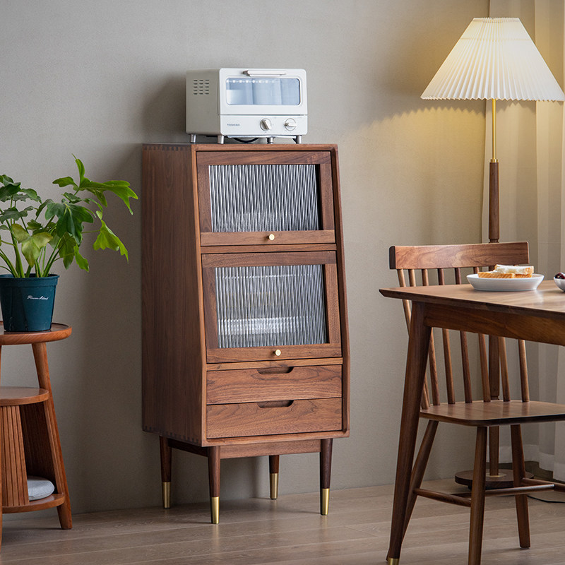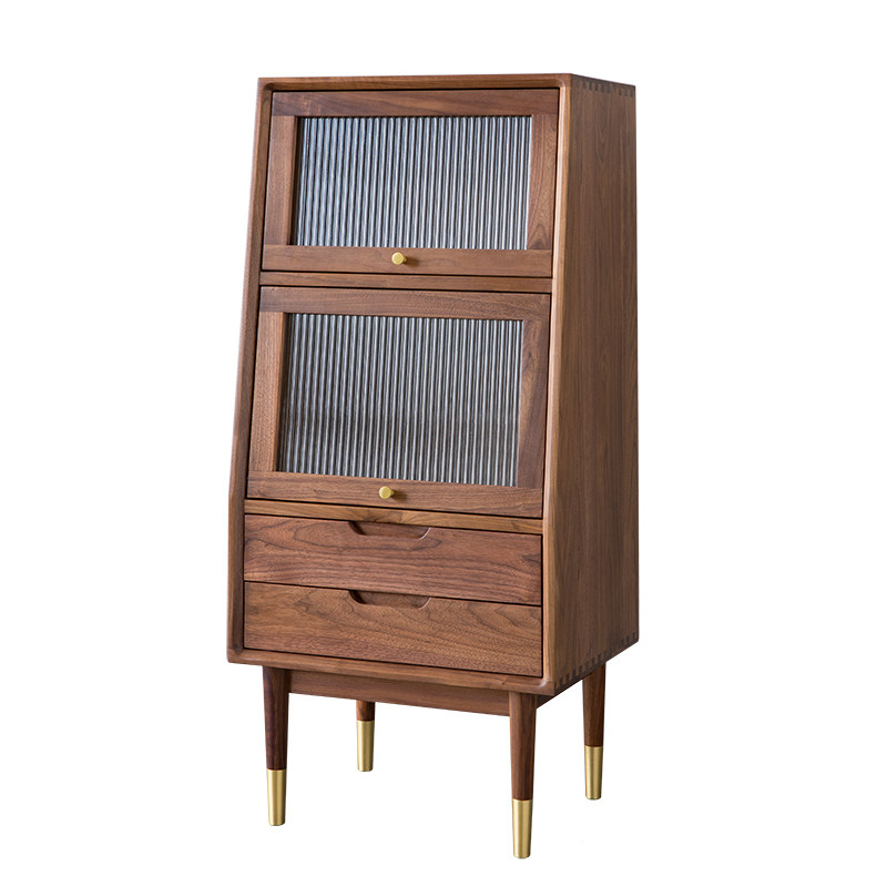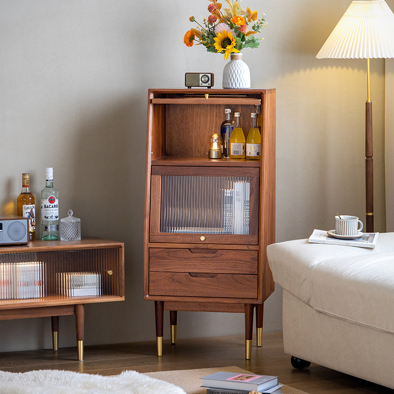 Picking up wood Nordic solid wood TV side cabinet black walnut living room sofa vertical cabinet storage bucket cabinet restaurant wine cabinet