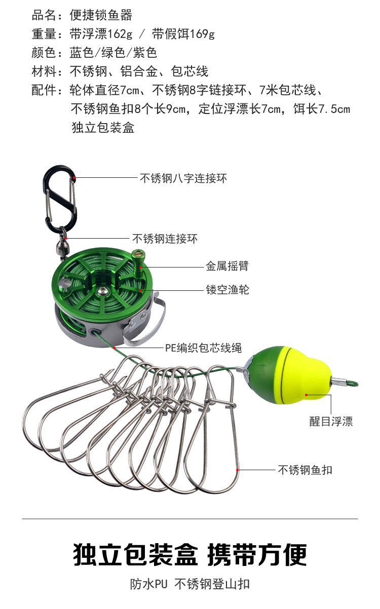 Second Generation Love Road Subfish Buckle Stainless Steel Telescopic Live Fish Buckle Road Subwheel Multifunction Portable Large Things Lock Fisher-Taobao