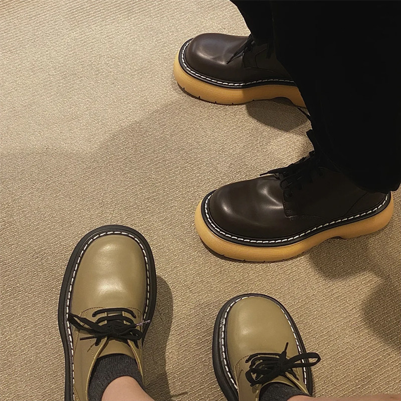 Serie Leather Gang Couple Small Leather Shoes Net Red Martin Boots Thick Sound Increases Men and Women with Big Boots