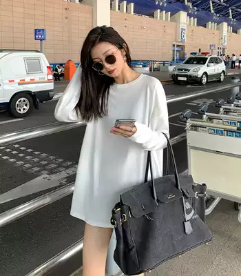 Korean long sleeve T-shirt female cotton 2021 new autumn joker loose medium and long top white base shirt ins tide