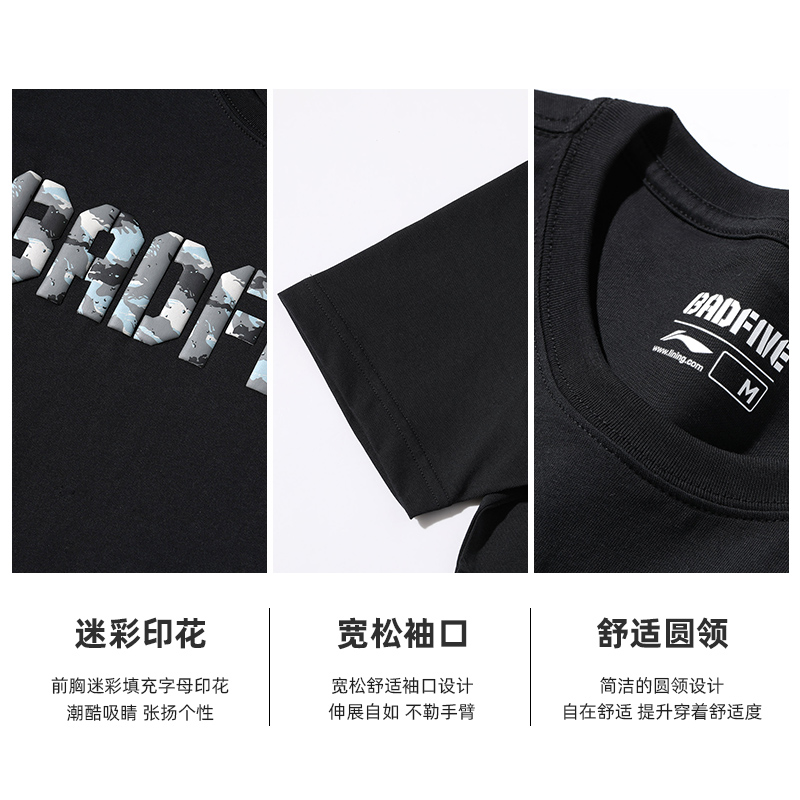 Li Ning Short Sleeve Men T-Shirt 2022 Summer BADFIVE Loose Half Sleeve Round Collar Pure Cotton Basketball Sports Tide