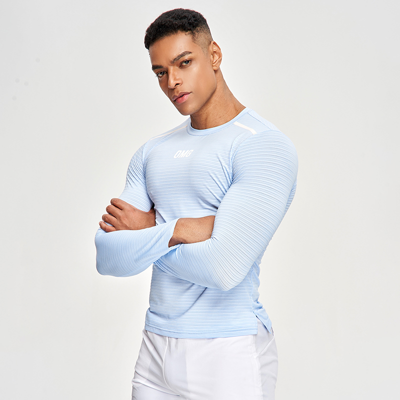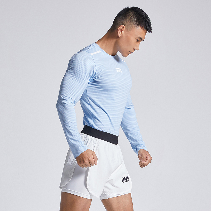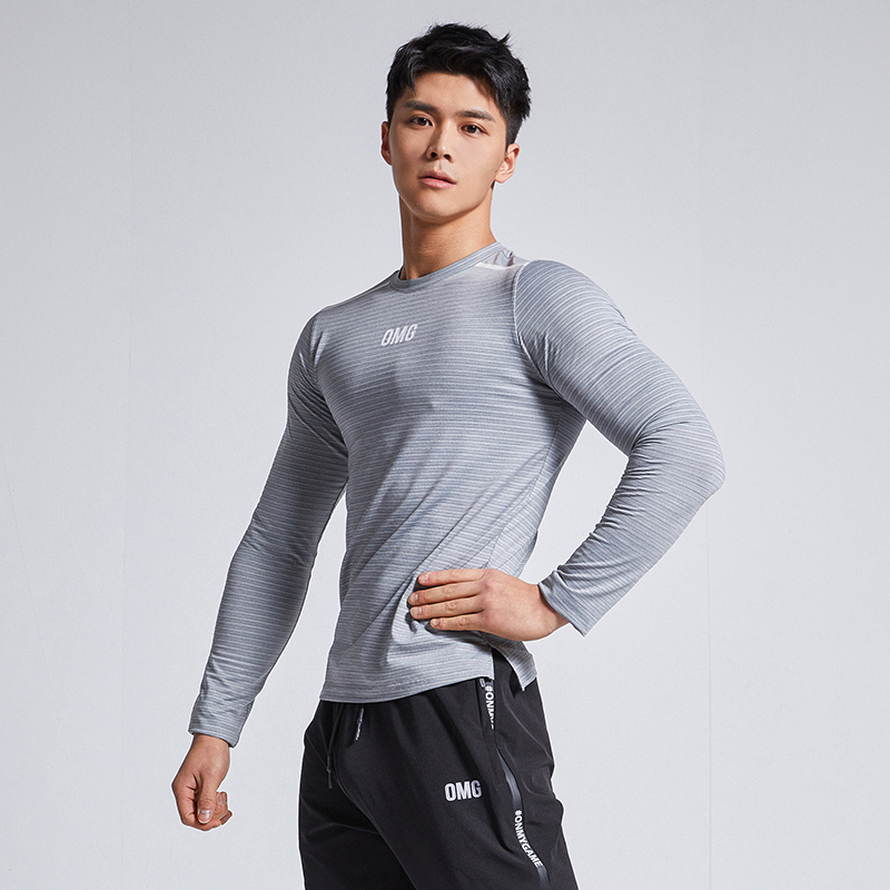 OMG tide brand autumn thin nylon ice silk quick-drying long-sleeved fitness clothes men's sports T-shirt training fitness clothes