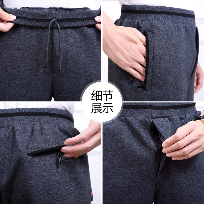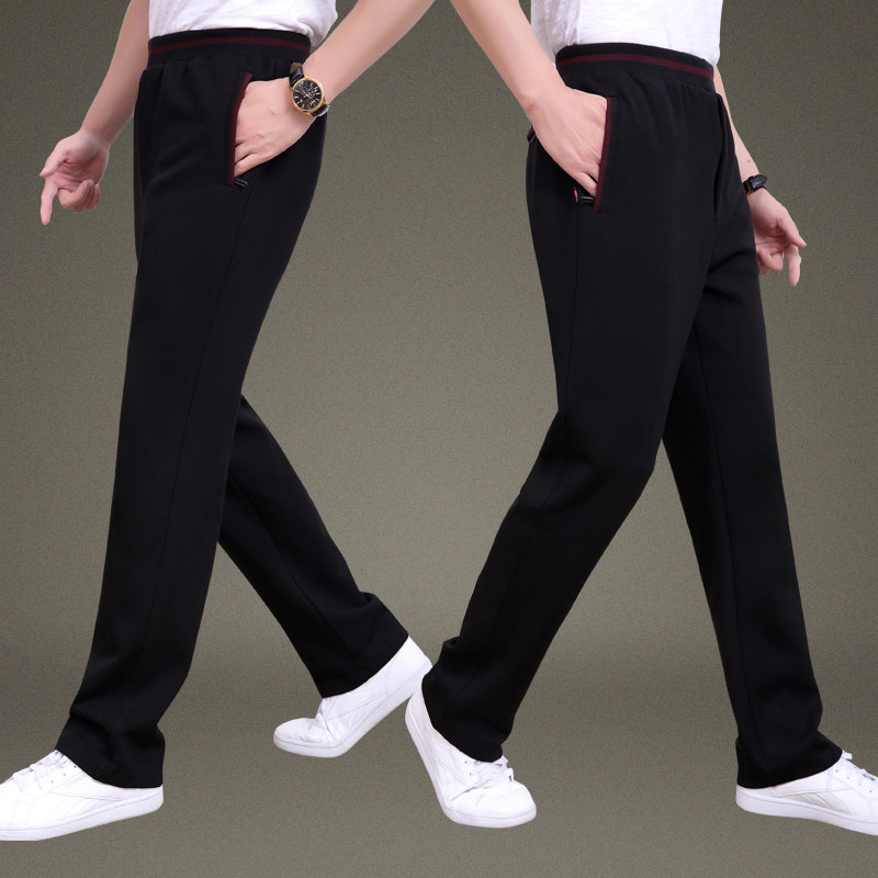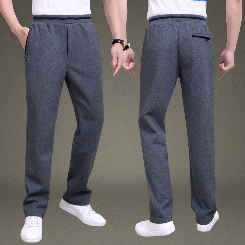 Spring and autumn middle-aged and elderly cotton casual sports pants men's trousers large size straight dad wear middle-aged loose running pants
