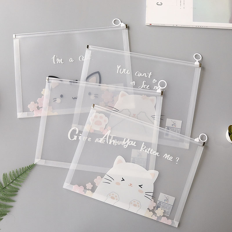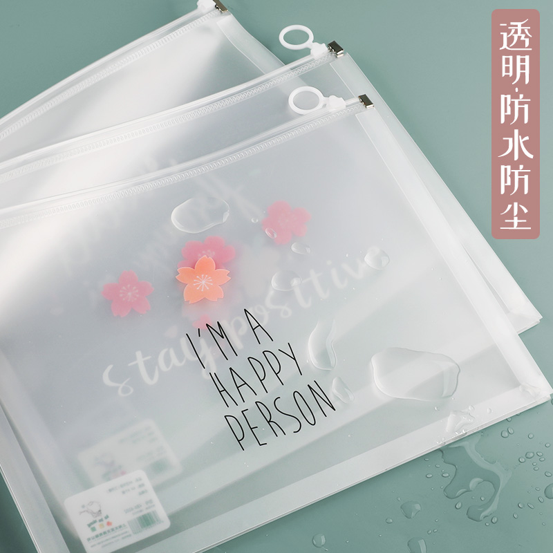 Document bag Transparent zipper bag Plastic a4 thickened large-capacity student cute document storage bag Data bag file bag Test paper stationery office supplies wholesale folder waterproof book bag