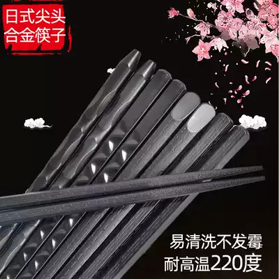 Japanese pointed alloy chopsticks home high grade non-slip high temperature resistant 10 pair set hotel dining room cooking commercial