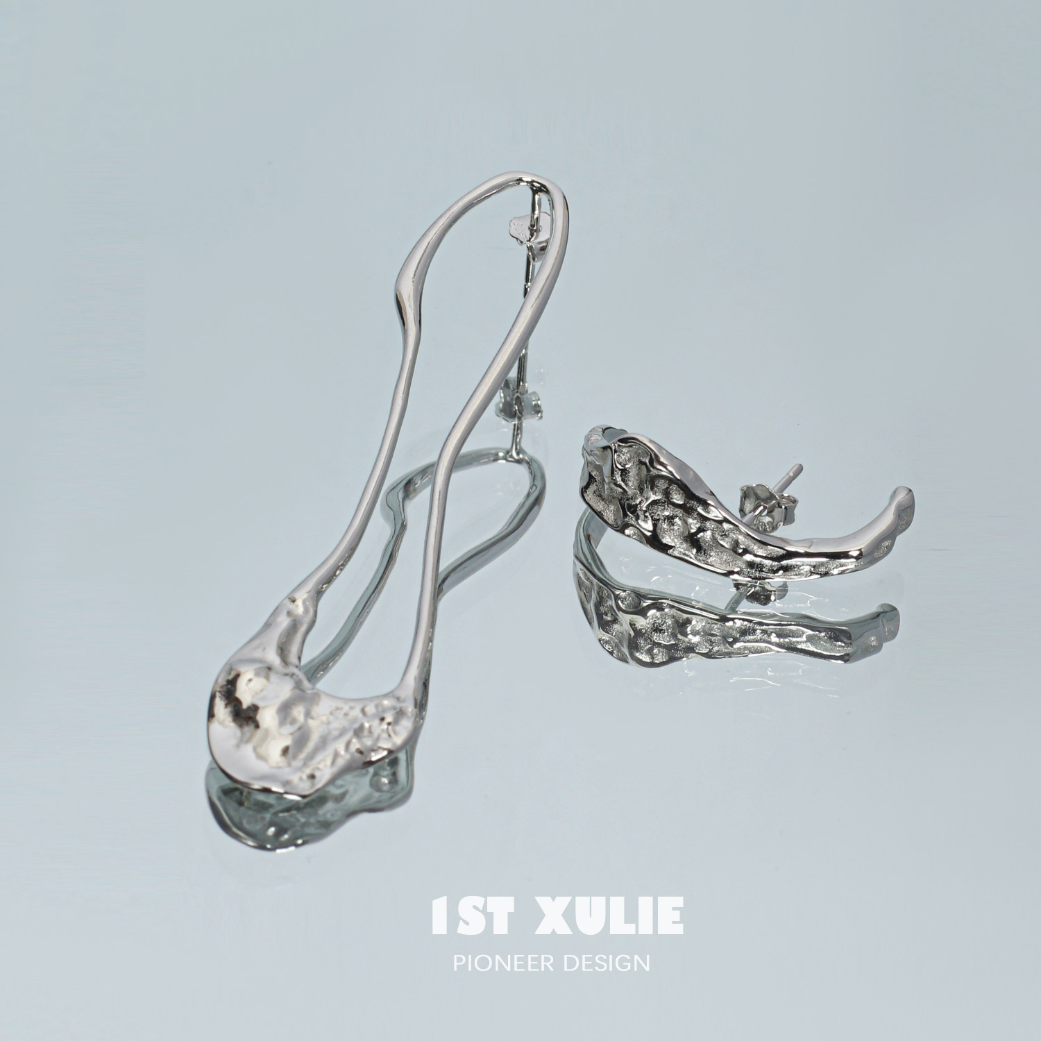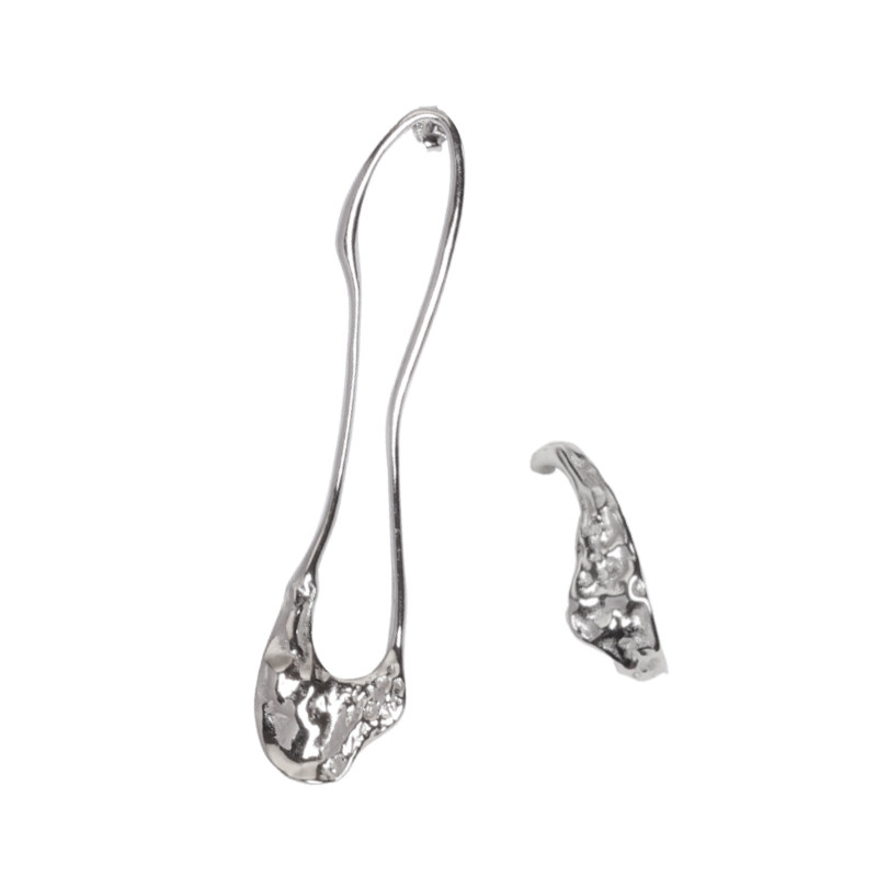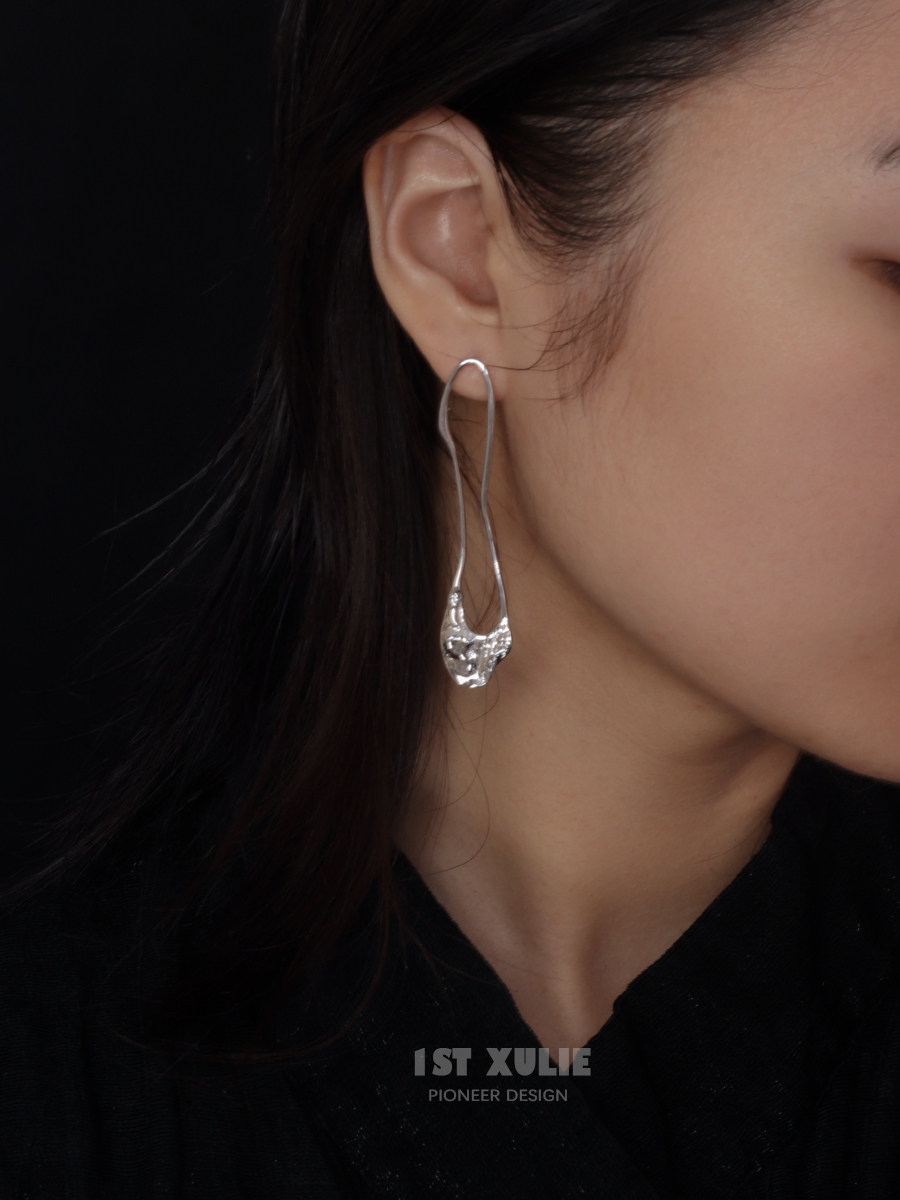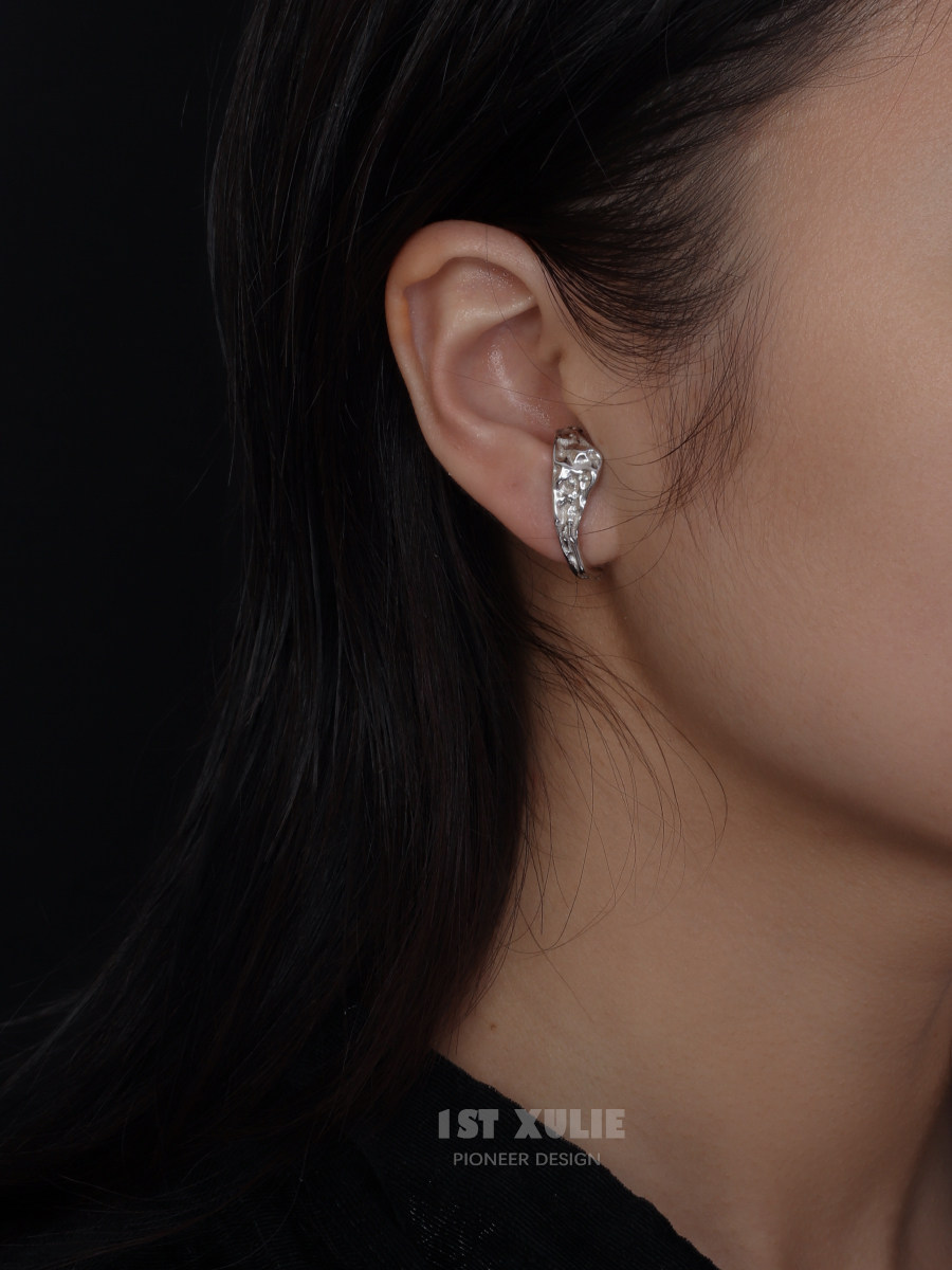 1ST XULIE925 sterling silver earrings niche design asymmetric texture cold wind women's personality ear pin