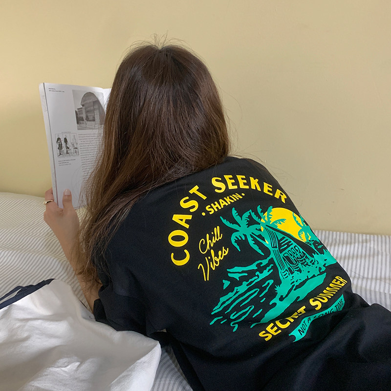 2022 summer new loose mid-length T-shirt women's short-sleeved net red Hong Kong style cartoon printed cotton half-sleeve top