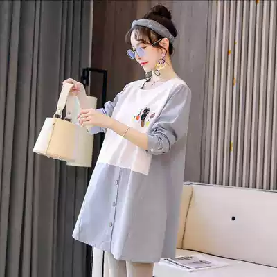 Western style maternity clothes Spring and autumn fashion T-shirt mid-length dress long-sleeved top sweater maternity suit